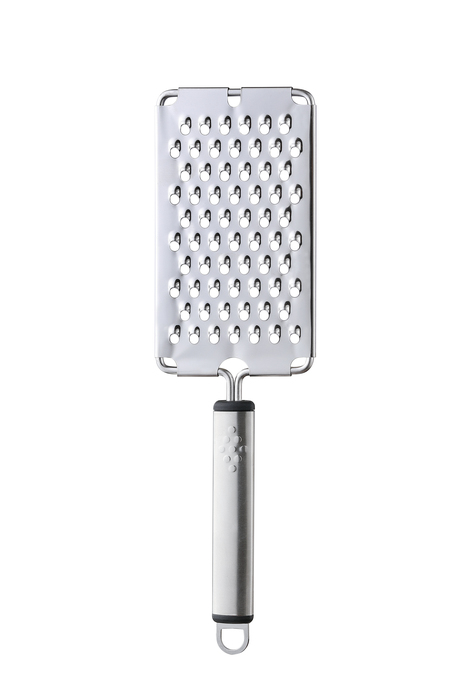 Терка виготовлена з високоякісної нержавіючої сталі з ручкою. Є зручна підвісна петелька в робочій зоні кухні. Прилади з нержавіючої сталі здатні служити довгі роки, вони успішно протистоять дрібним подряпинам, стійкі до корозії і гігієнічні.